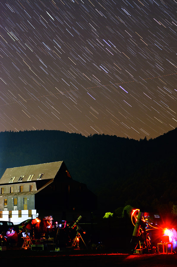 Najveći problem kod DSLR aparata za astrofotografiju je šum koji se pojavljuje u obliku šarenih “fleka” koje se obično javljaju uvijek na istom mjestu. To sam pokušao dočarati na ovom primjeru (obrađeno da bude jasnije):
